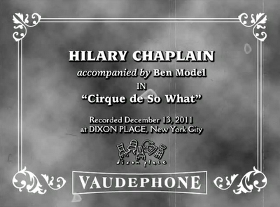 "I've been going to Ron Hutchison's Vitaphone programs at the Film Forum for many many years. It occurred to me that there is a certain modular quality to them....something similar to the vaudeville bios I do on Travalanche and to the photo essays Jim does on Vaudevisuals. So it occurred to me that conceptually it would be a natural thing for us to collaborate on -- the joint content we create fits both of our blogs. I came up with the idea of distressing it to make it look like a Vitaphone and also came up with the semi-accurate format of the titles. I book all of the acts, determine the content, and coach them on the aesthetic we're going for (I've been producing vaudeville shows since 1995, so it's also a natural outgrowth of that.) I also secured theme music from Vince Giordano and (upcoming) Jerry Zucker, and also have a say in how the act is shot (i.e., framing composition -- there ain't much else!). Jim does all of the shooting, lighting, post-production, and works with a subcontractor on titles."